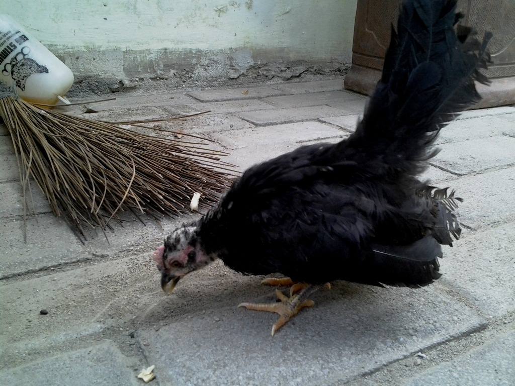 Karena baru datang di Little Farm, penampakannya masih kusam, seperti TKI yang pulang membawa nasib sial dari Jiran. Bulu-bulunya kurang segar. Kepalanya peyang dan nyaris botak. Kabarnya ia korban bully teman-temannya satu kamar di kota asalnya sebelum sampai di Little Farm.